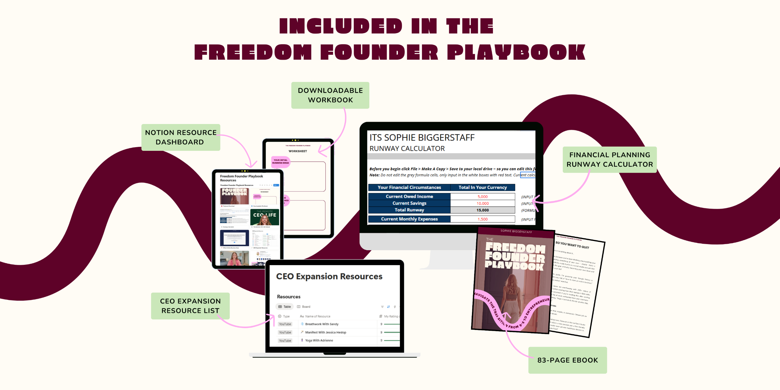 Your 80-page step-by-step guide, resources and templates to confidently navigating the transition out of your 9–5 and into entrepreneurship.
